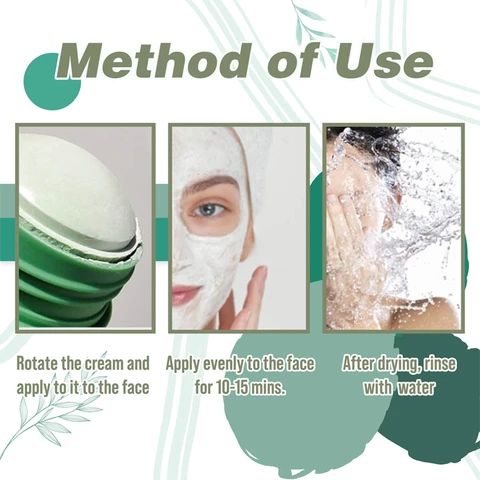 Aplicați uniform pe fața uscată, evitând buzele și pleoapele. După aplicare, lăsați să se usuce 10–15 minute. Clătiți cu apă caldă și masați ușor în piele.