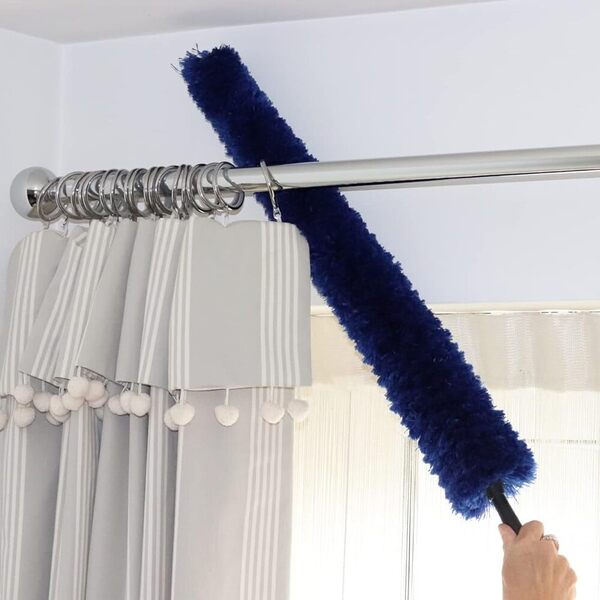 Utilizați DUSTOFF pentru a curăța rafturile înalte, balustradele, șinele de la perdele și alte suprafețe greu accesibile. Lungimea sa de 75 cm și capul pufos captează eficient praful, asigurând o curățare completă de fiecare dată.